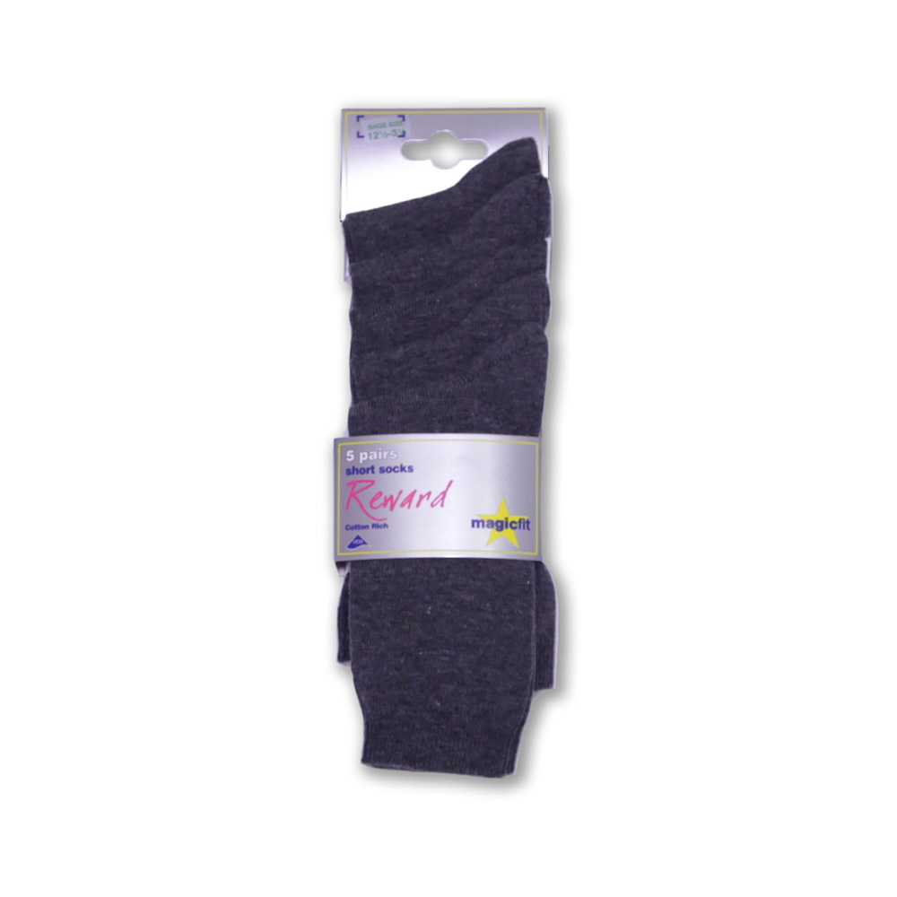 Grey socks 5-pack, plain/smooth knit, cotton rich with lycra.