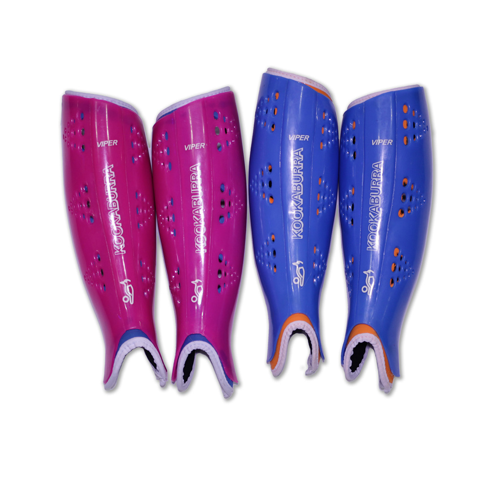 Kookaburra Viper shin guards, soft inner for skin protection, hard outer for shin protection. Product may differ from photo, NO blue they are black and pink only